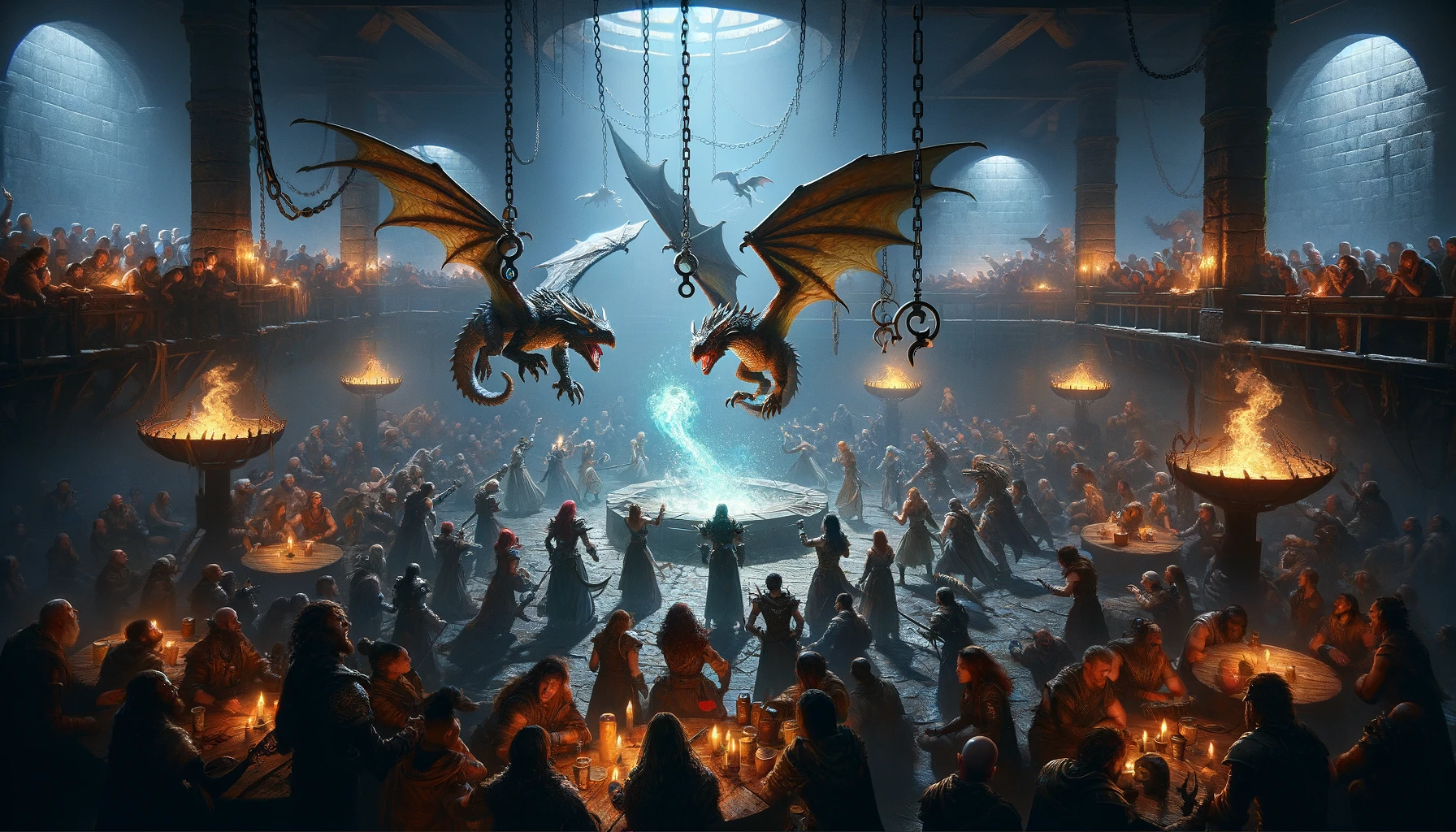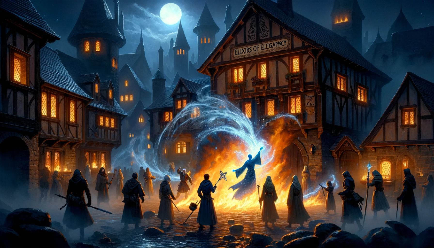 The spectacle left the crowd stunned and the adventurers exposed. In a quick pivot, they created a distraction by loudly accusing a bystander of being an elf, diverting attention and enabling a hasty retreat from the escalating pandemonium at the fight club.