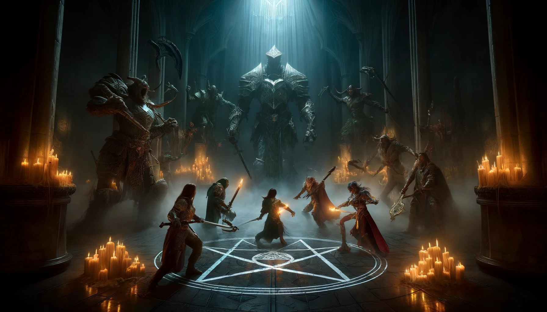 Battle lines were drawn in the heart of Ravenrock. Bram, Evalyn, and Brotil readied themselves, the air thick with the tension of impending conflict. Faerona, caught in a moment of hesitation, stood apart, weighing her next move. The fate of Ravenrock hung in the balance as our adventurers faced their first true test together, not just of their skills, but of the bonds that might form in the forge of battle.