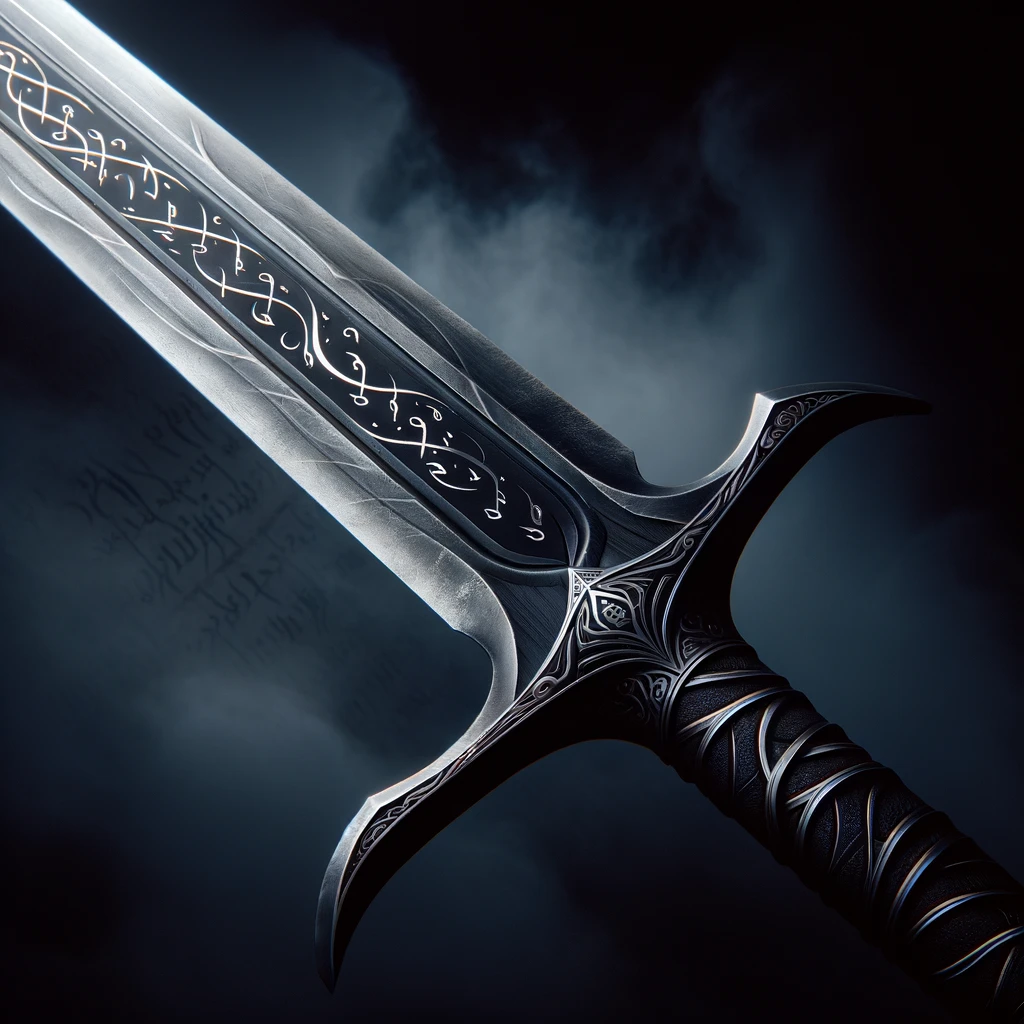This ebony blade is etched with silver runes that shimmer faintly in moonlight.